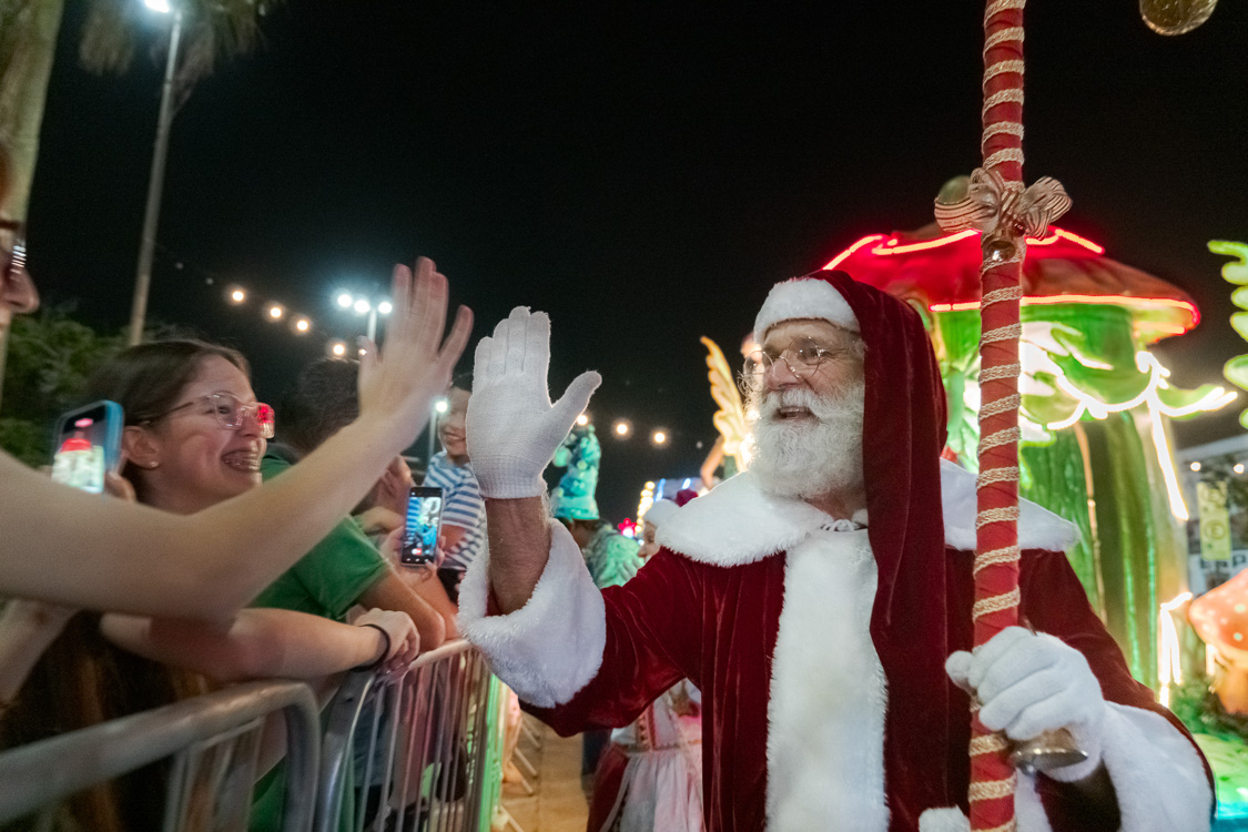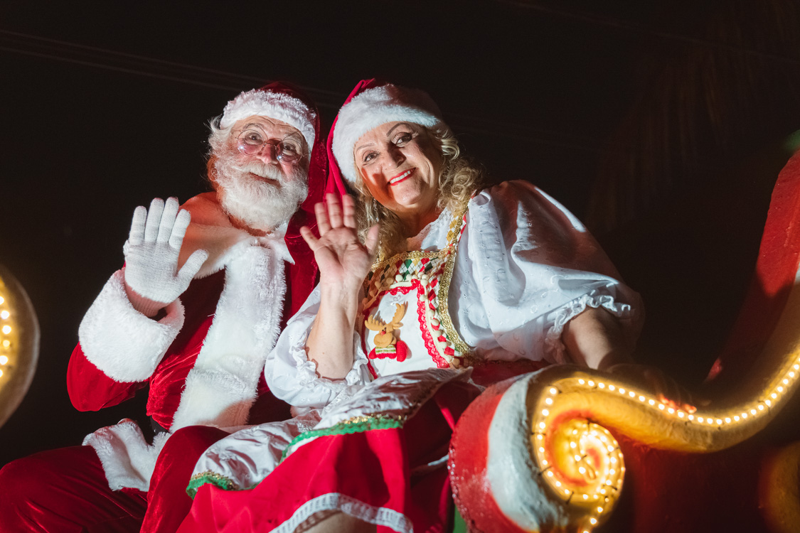 Colorida parada natalina percorre o Centro Histórico com fantasias, bandas, personagens iluminados e o Bom Velhinho. Clima familiar perfeito para fotos inesquecíveis e celebração natalina no cenário praiano mais encantador do litoral!